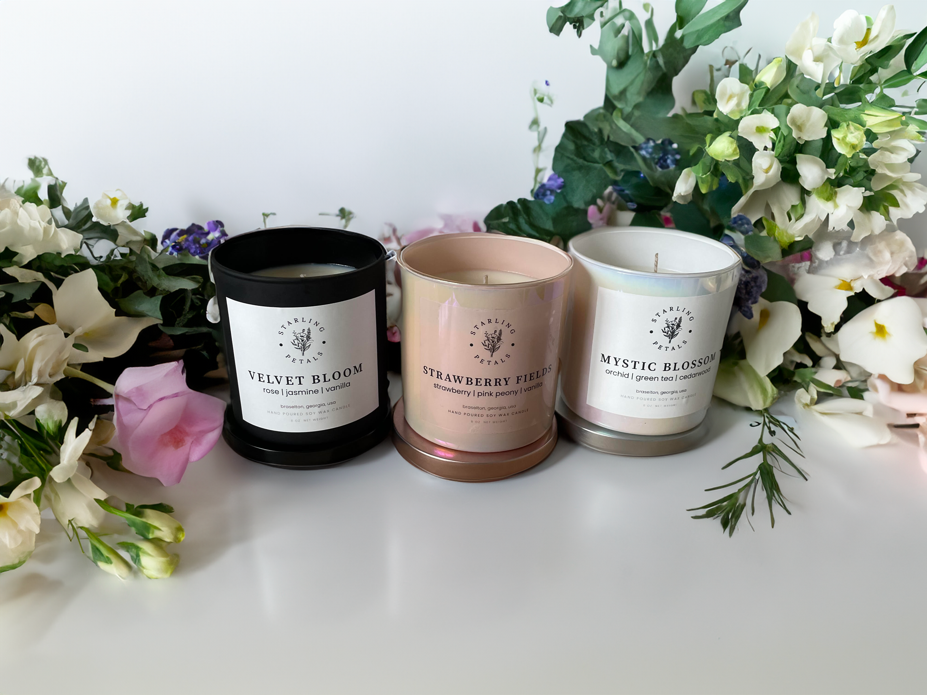Inspired by the enchanting scents of nature, Starling Petals was founded to share the transformative power of fragrance. Each candle is crafted with the finest ingredients to evoke memories, inspire peace, and add elegance to any space. At Starling Petals, we believe in creating moments of beauty and tranquility in everyday life.